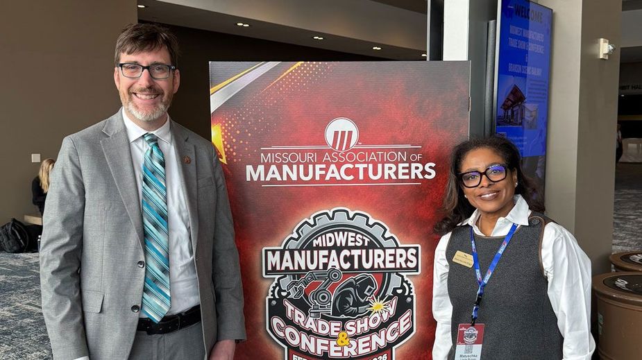 | Image | Assistant Vice President and Regional Executive Jeremy Hill poses with Matuschka Lindo Briggs, senior vice president and regional executive at the Federal Reserve Bank of St. Louis, at The Midwest Manufacturers Trade Show & Conference hosted by the Missouri Association of Manufacturers in Branson, Missouri. February 2026. |
