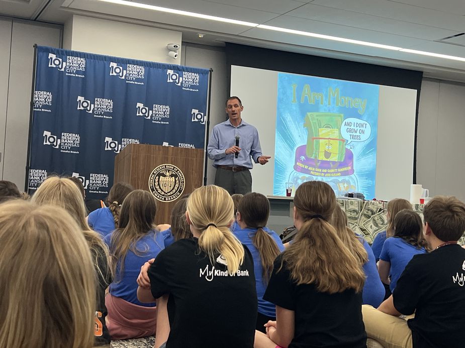 | Image | Senior Vice President, Economist, and Omaha Branch Executive Nate Kauffman welcomes more than 100 "Stellar Tellers" from local schools to congratulate them on their accomplishment. May 2025. |