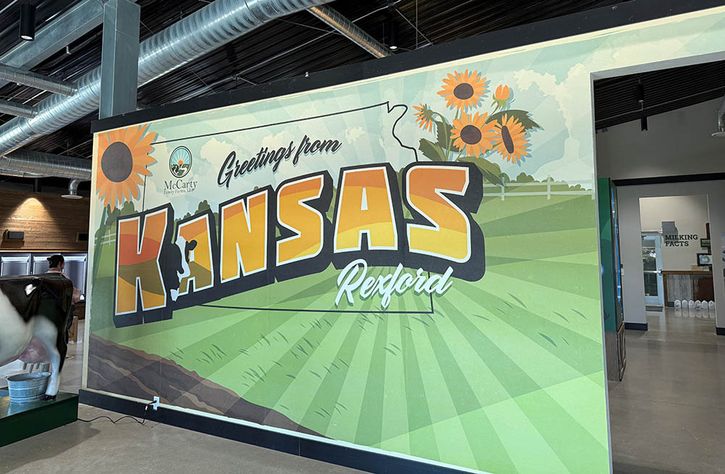 Next, Hill visited Rexford, Kansas, a town 20 miles northeast of Colby. There he visited the McCarty Family Dairy Farm to attend the board meeting of the Western Kansas Rural Economic Development Alliance. A tour of the farm included a 120-stall rotolactor, or “cow carousel” used to milk hundreds of cows within a span of 10 minutes. The apparatus is thought to be the largest of its kind in the United States. After the farm tour, Hill conducted a roundtable with economic developers from several counties throughout western Kansas. During the event, Hill gained valuable insight into the opportunities and concerns that rural areas are experiencing.