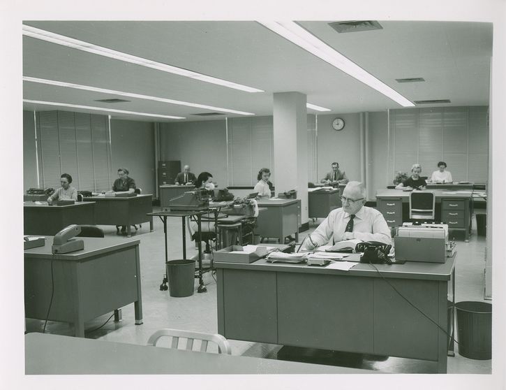 The 1957 renovation created more space for Branch offices, including the accounting department.