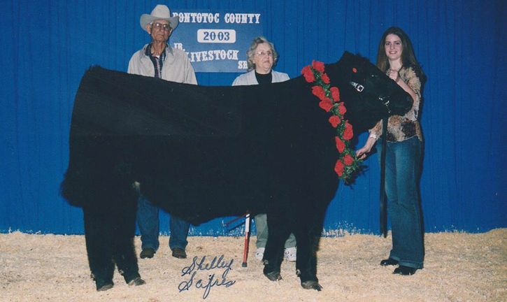 Sixteen-year-old Cortney Cowley and her grandparents, Chester and Erra Timmons, with Cowley’s show steer, “Gus,” at a livestock show in Pontotoc County, Oklahoma. Photo courtesy of Cortney Cowley